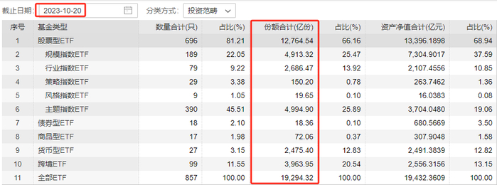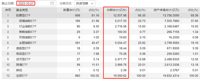 本周一(10月23日),中央汇金公司宣布买入交易型开放式指数基金(ETF),并将在未来继续。Wind数据显示,从上周五到本周五,全市场ETF的总份额增长超200亿份。
