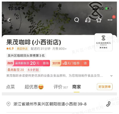 外卖平台名称:果茂咖啡(小西街店)