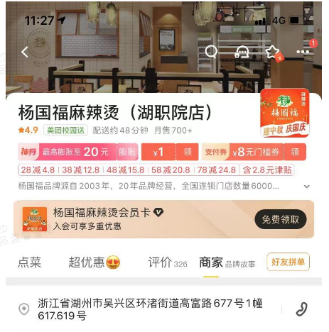 外卖平台名称:杨国福麻辣烫(湖职院店)