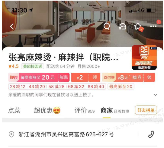 外卖平台名称:张亮麻辣烫·麻辣拌(职院店)