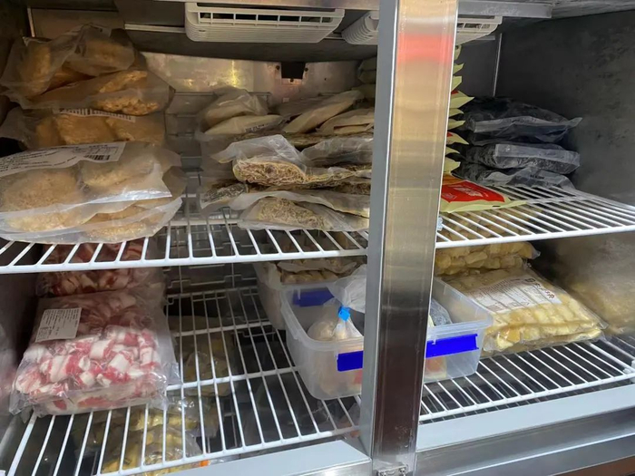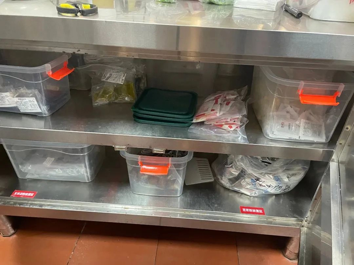 1、原料冰箱干净整洁,食材有序存放。