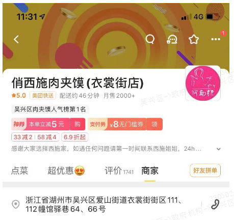 外卖平台名称:俏西施肉夹馍(衣裳街店)