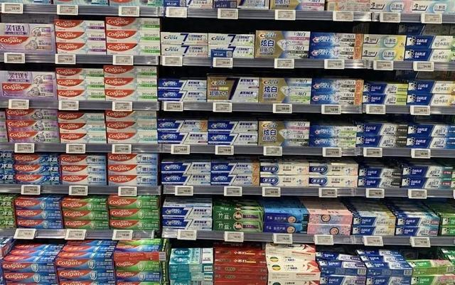 超市内琳琅满目的牙膏