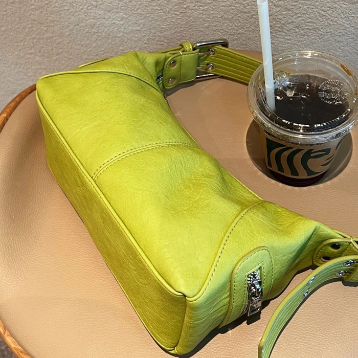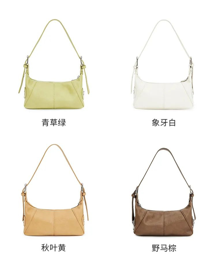 既综合了腋下包显高、有气质的优势;又加入了金属元素,让包包更有摩登感~