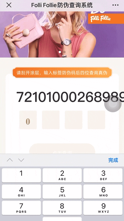 这个验证方式,是Folli Follie官方公众号列明的防伪方法,大家放心购买。