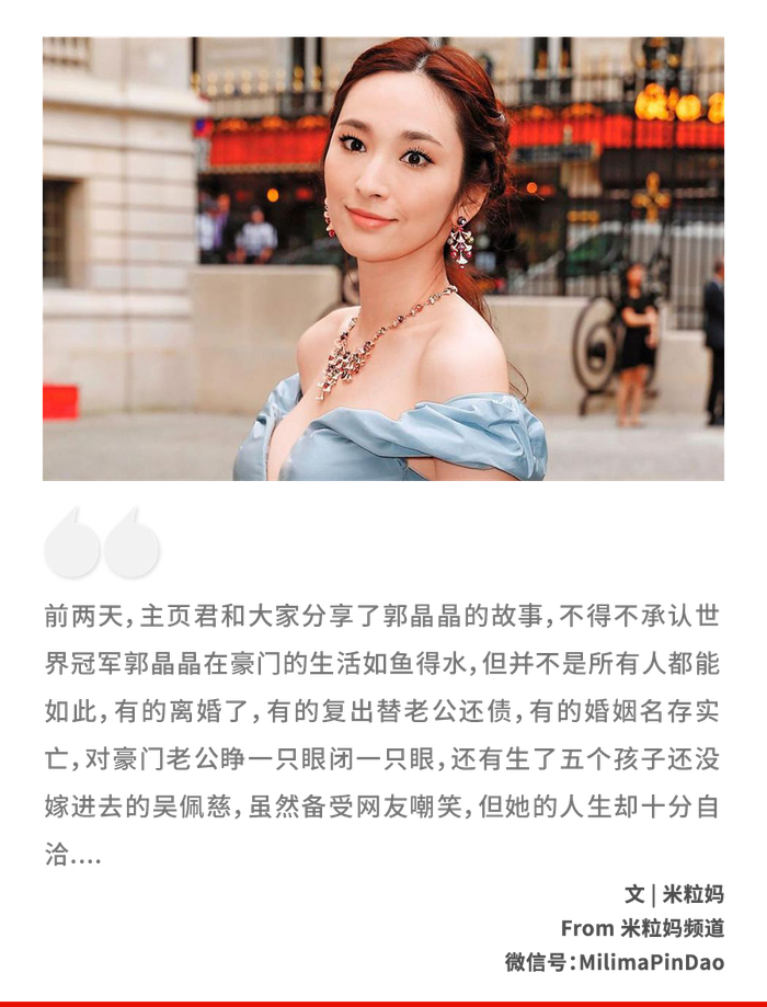 但比起那些姿态没那么难看,但嫁入豪门后依然也要吞针的女星来说,吴佩慈显然更加目标明确,知道自己要什么,也知道自己在干什么。
