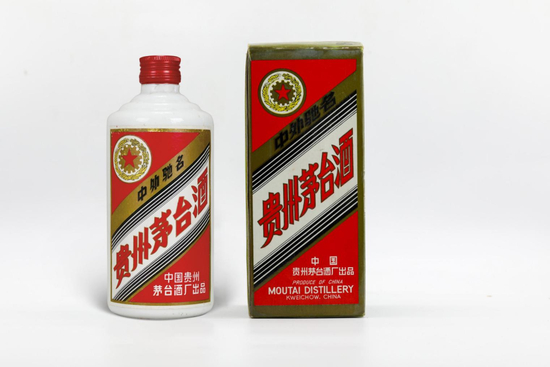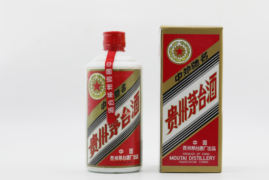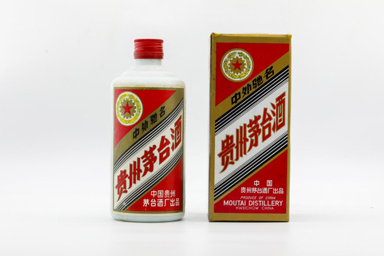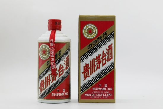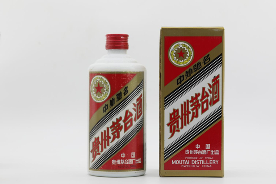 1991年1月8日,五星标识茅台酒彩盒及正标、背标全面改版更新,线条图案轮廓更清晰,正标右下角厂家标注第一行为“中国”,第二行为“贵州茅台酒厂出品”,下方增加酒精度及容量信息标注。
