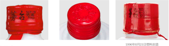 1996年的茅台酒共有两种瓶盖及封膜:一种为扭断式防盗金属铝盖红色封膜;另一种为8月19日开始采用意大利生产的新型防伪防漏瓶盖,透明封膜,批号及生产日期喷于瓶口的封膜上。后一种瓶盖从根本上解决了茅台酒包装低档、易漏酒跑气、瓶难开的问题,并在包装盒里附带“启用新瓶盖”的介绍标签。