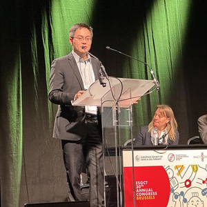 舒易来医生在第30届欧洲基因和细胞治疗学会年会上作报告。受访者供图