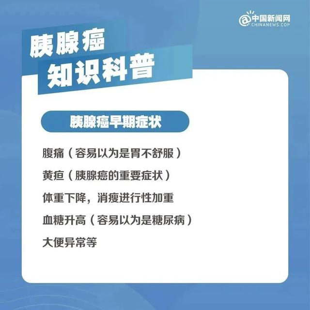 “发现难”是胰腺癌的一大特点。李德卫指出,早期胰腺癌缺乏特异的症状和体征,当出现上腹或背部疼痛、恶心、消化不良、食欲不振、腹胀、黄疸、新发糖尿病或原有糖尿病突然加重、体重明显下降、大便性状改变等,建议到医院做进一步筛查。
