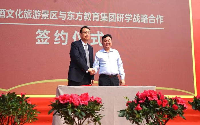 景阳冈酒文化旅游景区与聊城东方教育集团签署研学战略合作协议,将持续遵循“资源共享、优势互补、共同发展、互惠互利”的原则,为广大中小学生开展高标准、高质量的中小学生综合实践研学活动。
