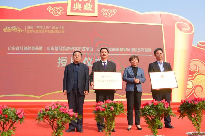 阳谷县科协主席孙喜臣,阳谷县妇联主席李秋云分别为企业颁授“山东省科普教育基地”、“山东省家庭家风家教建设教育基地”奖牌。