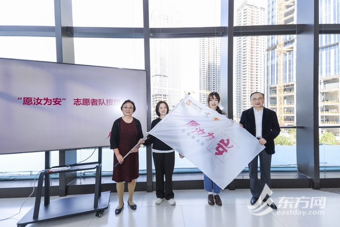 上海交通大学医学院附属第一人民医院院长郑兴东,上海市健康促进委员会办公室副主任、上海市卫生健康委员会健康促进处处长王彤、上海交通大学医学院附属第一人民医院甲乳外科朱丽共同宣布了“愿汝为安 ”——“上海健康科普引领人才能力提升专项”启动。现场,“愿汝为安”志愿者团队正式成立,郑兴东为志愿者代表授旗。