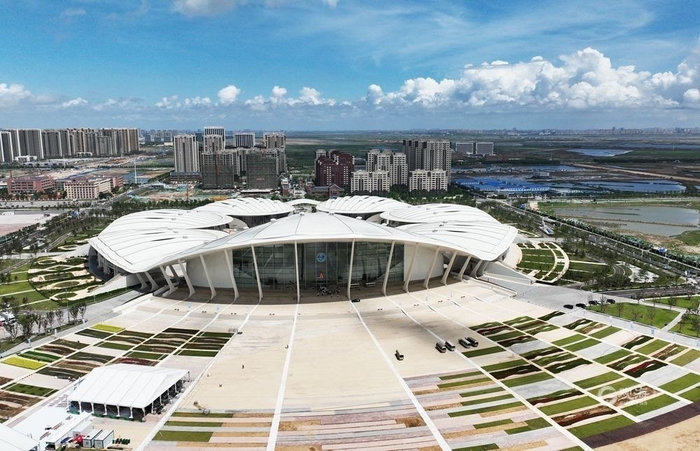 俯瞰上合之珠国际博览中心。 邢志峰 摄