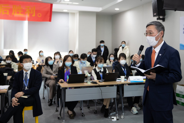 (王刚(右立者)在工作中。  君实生物供图