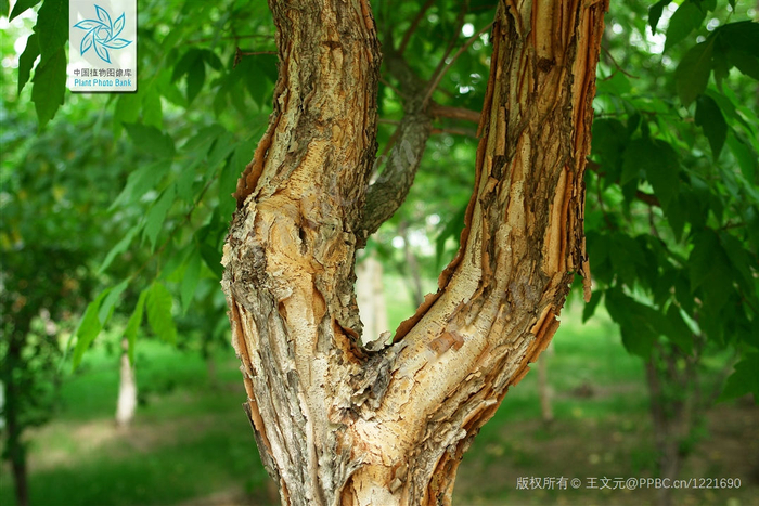 三花槭的树皮非常有特点,像薄片状一样剥落,看它卷曲的样子像不像拧起来的皮筋?斑驳的树皮是辨认三花槭最简单的方法之一。