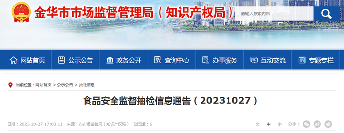 中国质量新闻网讯 近日,浙江省金华市市场监督管理局发布食品安全监督抽检信息通告(20231027)。