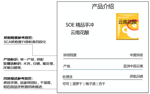 这一套“标准”推行后,消费者可以直接通过咖啡风味数值化主图,了解咖啡产品烘焙程度、产地及处理法、前后段品评杯测风味描述,以及数值化风味雷达图,快速、精确地了解产品。
