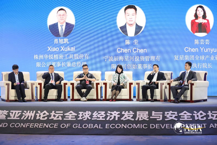 株洲华锐精密工具股份有限公司董事长兼总经理肖旭凯、宁波辰海星河投资管理有限公司创始董事长陈尘、复星集团全球产业研究院执行院长陈芸芸、上海交通大学安泰经济与管理学院产业经济研究中心主任史占中、协鑫科技控股有限公司助理副总裁宋昊坐而论道。