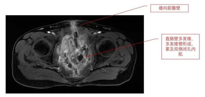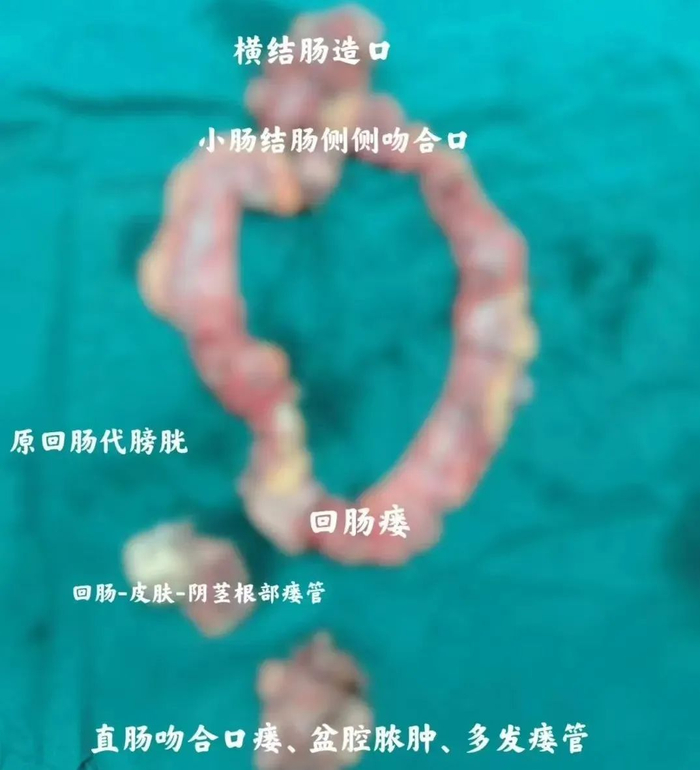 然而1个月后,再次反复出现肠梗阻,他又进行了数次开腹手术。2022年9月开始逐渐出现腹壁肠皮瘘,行肠镜检查发现直肠吻合口漏伴吻合口狭窄。董先生曾求助于多家顶级医院但屡次碰壁。无奈之下,他又接受了横结肠造口及盆腔病变回肠旷置手术,随后又出现了阴茎根部肠皮瘘、尿道持续性流粪水。