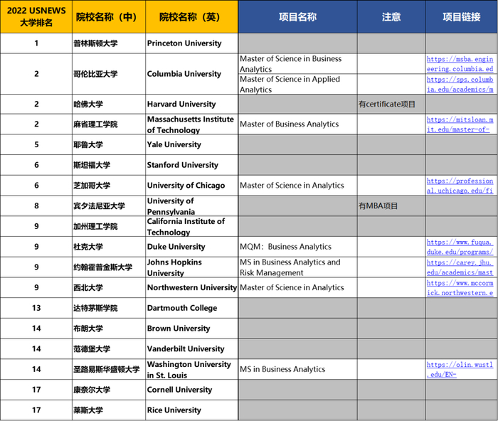 但此类项目在申请中会重点考核学生如何运用技术去发现问题,解决问题,并最终能够帮助企业进行商业决策的能力,如果大家有意申请,需要加强数据分析解决商业问题的实践。比如杜克、南加大等BA项目,都在此列。