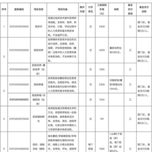 参保人员享受基本医疗保险待遇时,不设基金起付标准,职工基本医疗保险、城乡居民基本医疗保险报销比例分别为70%、50%,计入参保人员年度基金最高支付限额。项目所列三级医院价格为基金最高支付标准,基金按规定比例支付;医疗机构实际收费价格低于基金最高支付标准的,以实际收费价格作为基金支付标准。同时,参保人员享受工伤保险待遇时不区分甲、乙类。