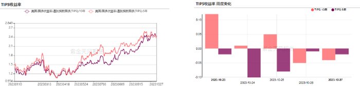 5年期和10年期TIPS收益率上涨,5年期TIPS收益率于周五收于2.37%,较前周下行2bps;10年期TIPS收益率于周五收于2.42%,较前周下行4bps。