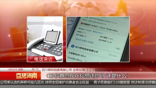 【电话采访】四川明和拍卖有限公司 相关负责人 李先生:这个价格你觉得能不能买到这个车嘛,1000块钱(记者:不是多少钱的问题,那你竞拍规则写得很清楚,就是价高者得)那我这边如果违约的话,也按照竞拍规则,就只赔你几百块钱(记者:那你意思你想违约吗,还是什么?)对啊(记者:那就是完全没有契约精神,这个合约相当于就没有用了)我们不亏钱,这个车就可以交付,我给你交付了,我要贴4万、5万元,这就不是拍卖了,这是做好事了。