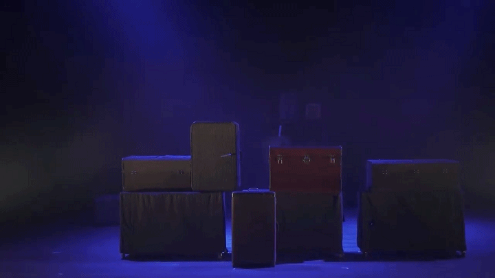 舞台又像是一个堆满行李的车厢,在氛围满满的灯光下开向未知终点的列车,那么的神秘那么的吸引人。