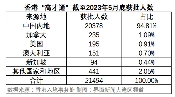 在高才通计划中,申请者近95%都来自内地。