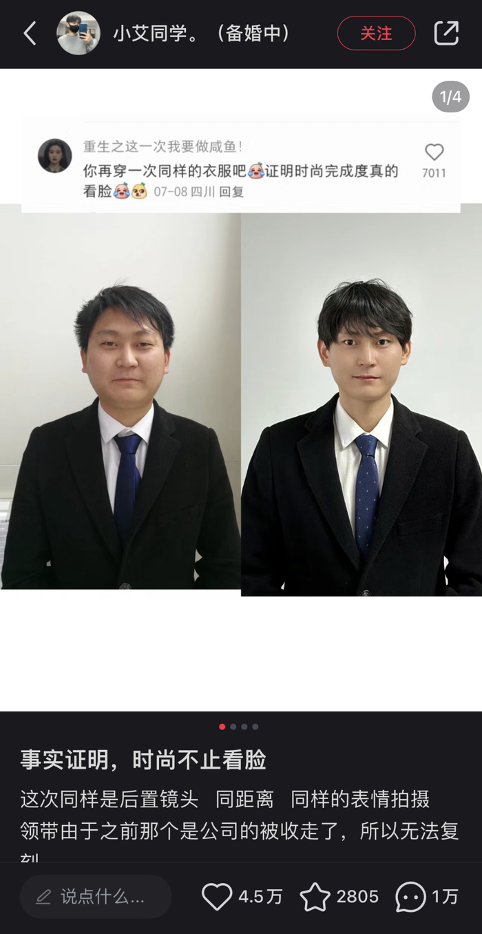 在社交平台上,像小艾同学一样,由于听劝而形象改造成功的人比比皆是。不少人变美了,变自信了,甚至因此重拾了生活信心,某种程度上实现了人生逆袭,变成了更好的自己。