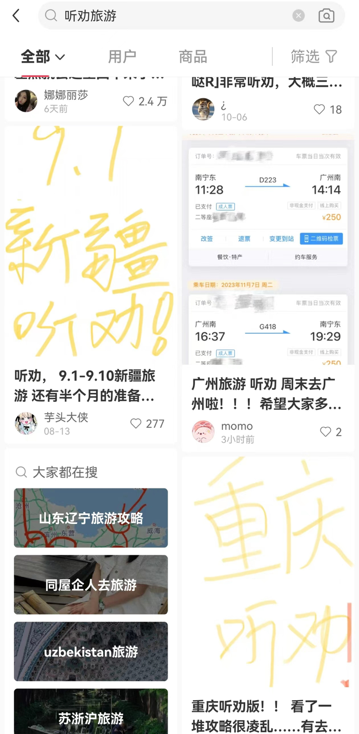 今年国庆假期结束后,小红书发布了《2023年国庆旅游报告》。报告显示,今年国庆假期,“互助式旅游”成为旅游新趋势。从9月15日开始,每天都会有两千人在小红书上发出旅游“听劝”的笔记,询问攻略指南,平均每篇听劝笔记都会获得43.9条热心人的帮助。普通旅游攻略过于古板,“听劝”攻略却让人感受到朋友般的真诚,“听劝”旅游如今也被更多年轻人关注、接受。