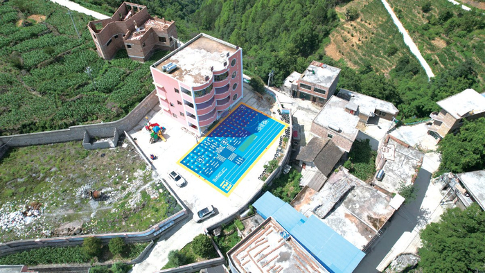 全国第712座乡村儿童操场,贵州省安顺市紫云县四大寨乡猛林幼儿园鸟瞰图 摄/秦弦