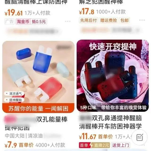 记者在电商平台搜索发现,不少线上商家在售卖这种“鼻吸能量棒”,价格多在几元至几十元之间,部分产品月销量已达上千件。从商家宣传看,产品主要由薄荷脑、冰片、植物精油等成分构成,气味多样,有些产品还加入了多种烈酒成分,以吸引消费者购买。