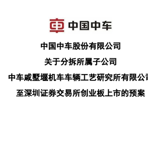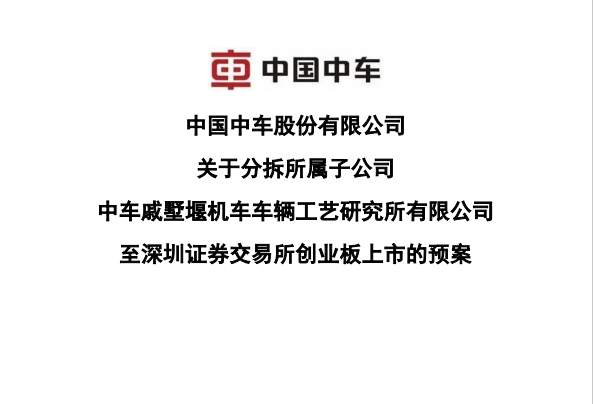 北极星风力发电网获悉,中国中车董事会通过决议:拟将其子公司中车戚所整体变更为股份公司后,分拆至深交所创业板上市。本次分拆不影响中国中车的股权结构,本次分拆完成后,中国中车仍然是中车戚所的控股股东。