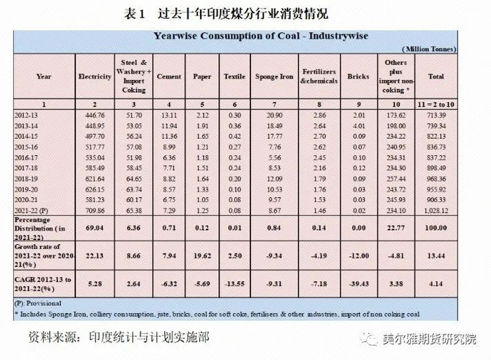 因印度煤炭主要用于电力、钢铁行业,下文将主要分析这两个行业煤炭消费情况。