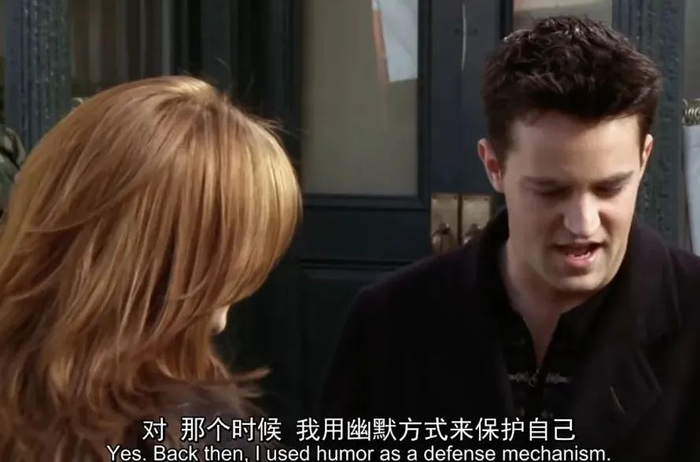 这是钱德勒的怪异和清高,女友一个用词错误,或者有点大的鼻孔,就可能会掩盖她所有的其他优点;但这也恰恰是钱德勒内心深处对亲密关系的恐惧与不安感,因此,任何一个小小的缺陷都可以让他提出分手。当然,也是马修·派瑞的。