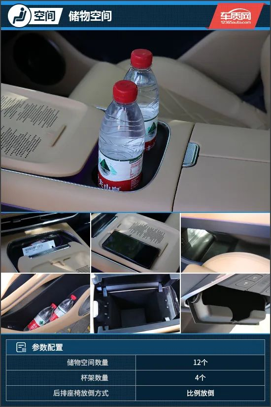 2024款岚图FREE不管是门板储物槽,还是中控台下方的储物槽甚至是扶手箱,开口都非常大,而且深度也比较可观,可以直接放入尺寸较大的物品。另外,前排还配备了手机无线充电板、1个USB Type-C、1个Type-A接口和1个12V电源。此外,两个杯架也都配备了限位装置,可以很好地固定住水杯。