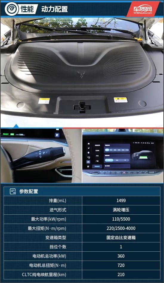 动力方面,新车搭载了1.5T增程式混动系统,最大输出功率为110kW,电动机总功率360kW,电动机总扭矩720N·m。相较于之前的版本,新的混动系统能够更好地匹配发动机的高效转速区间,实现更快的电能转化。