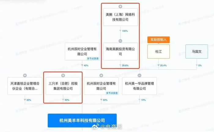 股东界面显示,杜刚持股95%的合肥微帽网络科技有限公司,有三只羊49%的股份。
