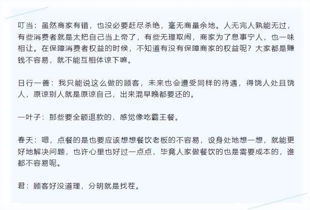 “中午小忙,服务员忘记打包两份米饭,送到后客人要求191元整单退款,完全没商量,将近200元的餐,说退就退了,给他怎么处理都不接受……”在杭州开川菜馆的齐老板(化名)向记者诉苦,“错肯定是在我们这里,但我们又不是不帮他解决,可是不管怎么说,客人都是油盐不进,一定要退全款……”