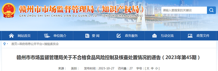 赣州市市场监督管理局关于不合格食品风险控制及核查处置情况的通告(2023年第45期)