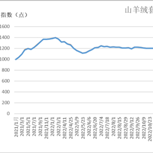 截至10月29日,山羊绒(套毛)价格指数报1134.32点,较上期上涨0.20%,山羊绒(套毛)价格报98.8元/斤,较上期上涨0.2元/斤。