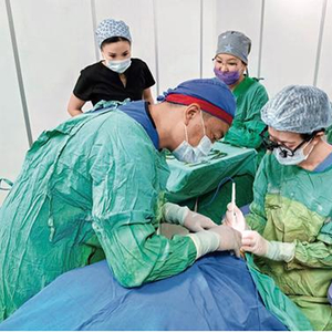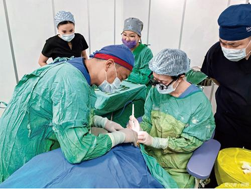 作为本次中亚之行的团队成员之一,教育部长江学者特聘教授、上海交通大学医学院附属第九人民医院眼科主任医师周慧芳教授为一位严重倒睫、眼部严重刺痛的86岁患者成功实施睑内翻矫正术。“与中亚的医生在临床诊疗方面深入沟通,充分体现我们在疾病认识、临床经验方面的特长,我们也获得了国际同行的尊重。”她说。