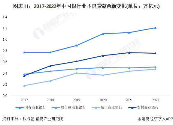 从银行经营角度来看,不良贷款余额在一定程度上反映银行的信用风险。2017年至2022年,我国不良贷款余额增速历经先增后减,在2019年达到最高值18.72%,后增速快速下降,2022年,我国商业银行不良贷款余额同比增速仅为4.56%。从细分银行来看,股份制银行在控制不良贷款方面表现优异,2017年至2022年,股份制银行不良贷款余额增长较少,仅由2017年的0.39万亿元增长至0.51万亿元,五年复合增速5.86%。