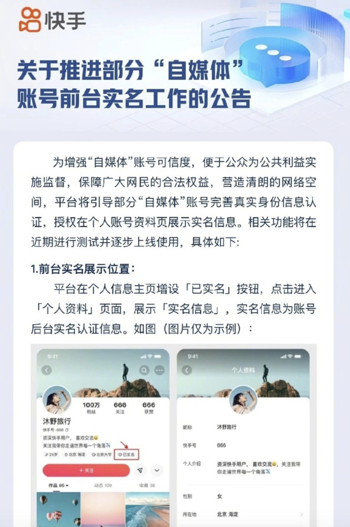 10月31日,微信、微博、快手、抖音接连发布关于近期引导头部“自媒体”账号进行前台实名展示的公告。微信表示,将分批次分阶段引导“粉丝”量50万以上的“自媒体”账号对外展示实名信息,近期将首先引导100万“粉丝”以上的“自媒体”账号对外展示实名信息;微博表示,站方将于近期引导社会时事、军事、财经、法律、医疗等专业领域100万“粉丝”以上的“自媒体”账号填写实名信息,后续将逐步扩大到相关领域50万“粉丝”以上的“自媒体”账号,经用户同意后进行前台实名展示。互联网大V是否应该前台实名展示备受关注。让网友可以看到大V、博主、主播们的真实信息,既是为了推动大V承担起与话语能量相匹配的责任,也是对大V粉丝的一种尊重。实名展示之后,自媒体在发布任何内容前都会掂量一下,到底合不合适、应不应该;知道到底是谁,网友就能分辨账号上发布的信息到底真实性如何。实名举措将引发的示范效应,以及给网络生态持续好转带来的助力,值得期待。长期以来,拥有数以十万百万计粉丝的大V、主播们,大多数没有以真面目示人。其中有些人不想披露身份或喜欢网名别有寓意,他们活跃在各个平台,或就热点话题发声,体现了社会责任感;或靠自己的诚实劳动、合法经营,在网上赚取流量获得收益。但不可否认的是,也有部分大V故意隐瞒身份,或利用身份的隐蔽性,为自己发布一些道听途说的消息、添油加醋、违规违法的内容打掩护;或在网上鼓噪生事,带节奏唯恐天下不乱。近年来,很多谣言就是大V首发或者经他们转发之后才产生了恶劣的影响,很多恶性网络事件也正是因为他们的参与才走向失控。在互联网上嗓音高、传播远,拥有较大的话语权就是公众人物,就不能“犹抱琵琶半遮面”,一方面享受互联网带来的巨大红利,一方面又对网络空间和网民不负责任。中央网信办《关于加强“自媒体”管理的通知》明确要求,对从事金融、教育、医疗卫生、司法等领域信息内容生产的“自媒体”,网站平台应当进行严格核验,并在账号主页展示其服务资质、职业资格、专业背景等认证材料名称,加注所属领域标签。如此,才不至于在一些成百上千万粉丝的自媒体账号被封时,公众只记得账号的名称,却压根不知道是谁在运作,虽然每次都露脸,露的只是“面具”。值得注意的是,前台实名展示并非一刀切地强制,普通用户及以个人日常生活分享为主的领域账号不受前台实名展示的影响,就是需要实名展示的也要“经用户同意”。当然,各个平台也表示,按照规定应该展示但未对外展示实名信息的“自媒体”账号,平台将对其账号流量、收益等予以限制。其实,只要自媒体有守法之心、有负责之意,就不怕真名实姓地展示出来,而且非但不会对他们的形象有任何的消损,反而会强化他们的公信力,进而收获更多的流量、有更大的收益。卸的是马甲,亮出的是态度,更是社会责任。无论在“自媒体”上打造怎样的人设,都不能忘了发布者和粉丝都是人的前提;无论怎样推崇网络的虚拟性,都需要牢记责任是现实的。既然站在头部收割流量,就该走上前台实名展示,大大方方地亮相是最好的人设。