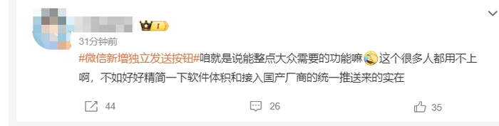 “微信新增独立发送按钮”冲上热搜!史诗级更新?网友热议
