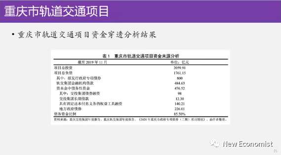 所以你看所以重庆咱们把它归总下来,重庆市轨道交通项目资金咱们穿透分析结果是什么呢?你看项目投资总额是2059亿,这是第一行。