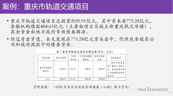 就是重庆市轨道交通里面有776个亿是资本金,是上级的母公司给的资本金,但这个资本金空间你穿透下来,它其实776个亿中间476个亿是母公司借钱借过来的,再往下再剥离这476个亿里面是是哪来的呢?