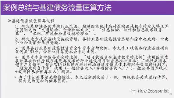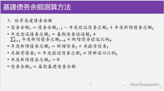 我们怎么算呢,我们先从基建出发,估计基建投资中地方政府多少钱是从债务来的,然后把它一年一年为了基建投资而融资,那个钱一点一点加总,流量加总起来,当然我们还要算他还债的钱了。